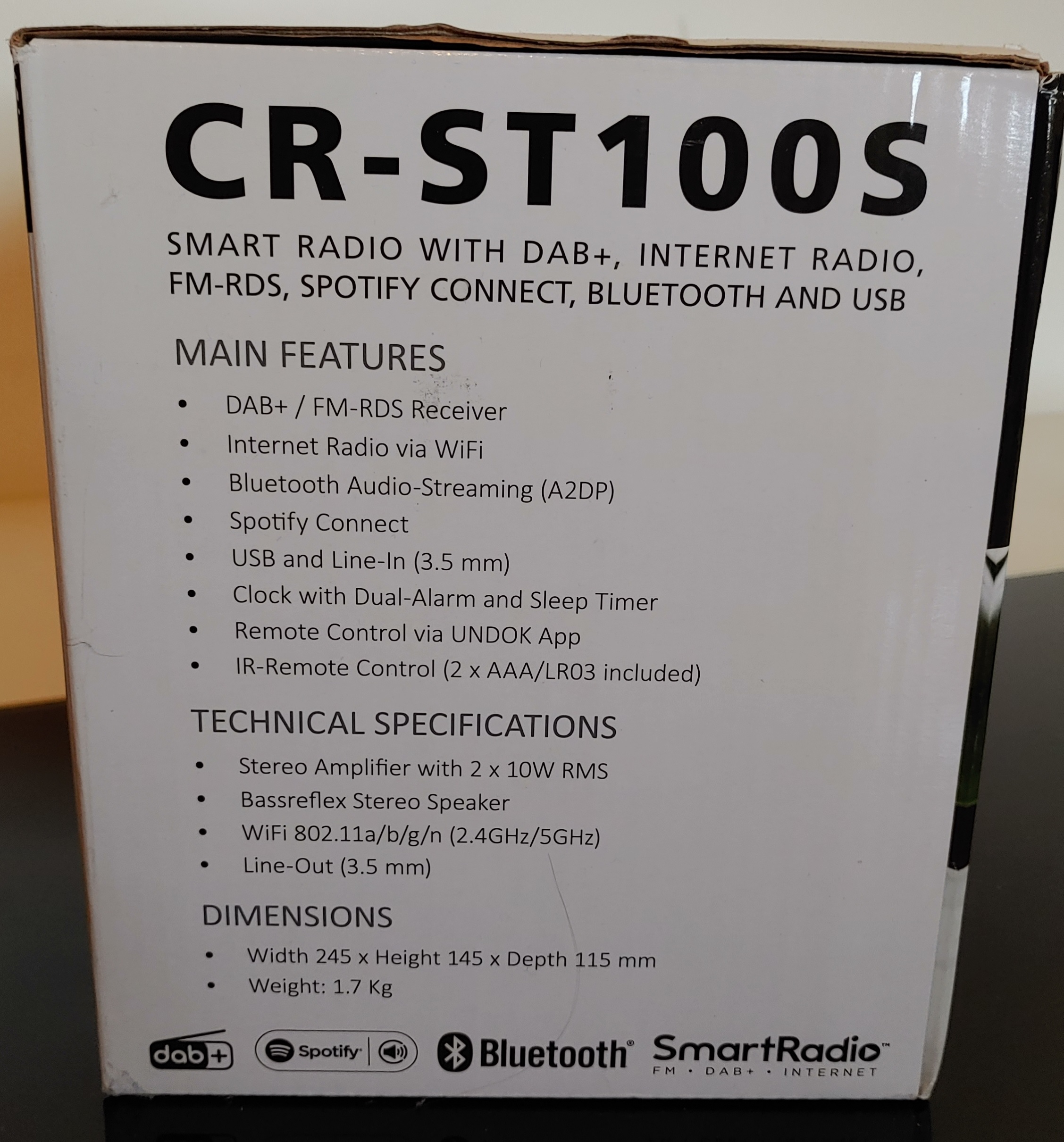 Das Bedeutet FM/DAB/Internetradio inklusive Spotify Connect, Podcast Funktion, AUX und Bluetooth.