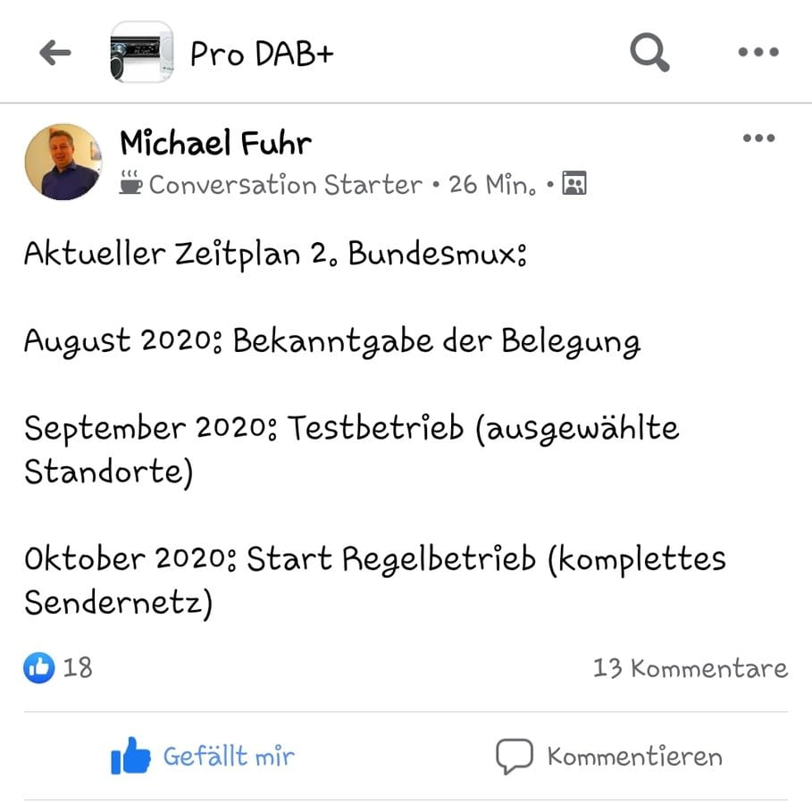 Nachricht von Michael Fuhr auf Facebook... Pro DAB+
