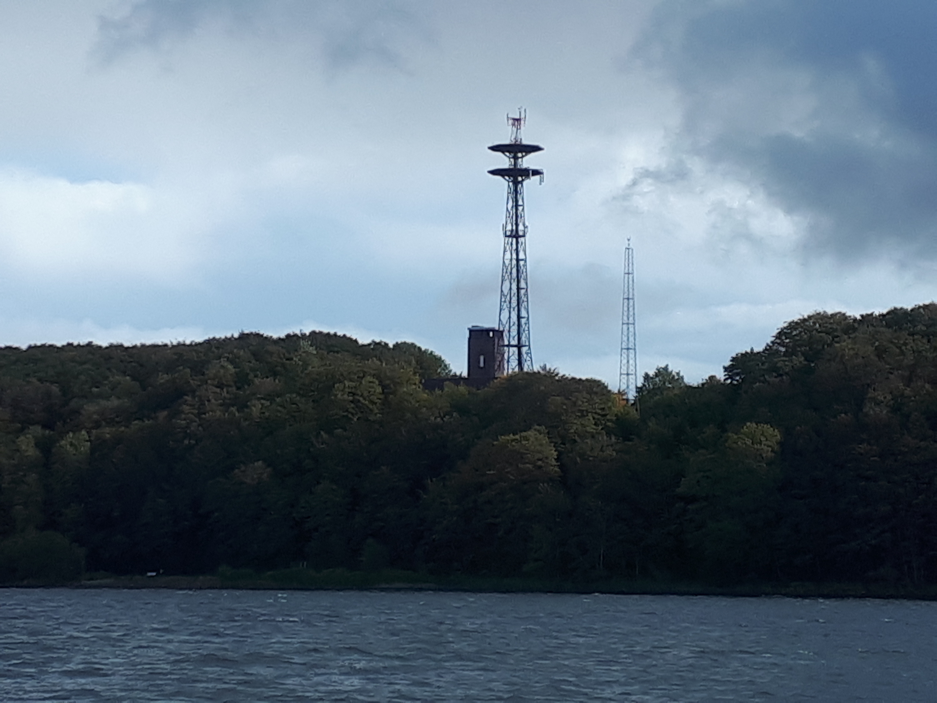 Die Antennen auf dem Gelände des Führungsbunkers der Deutschen Marine in Glücksburg-Meierwik von der Flensburger Förde aus gesehen